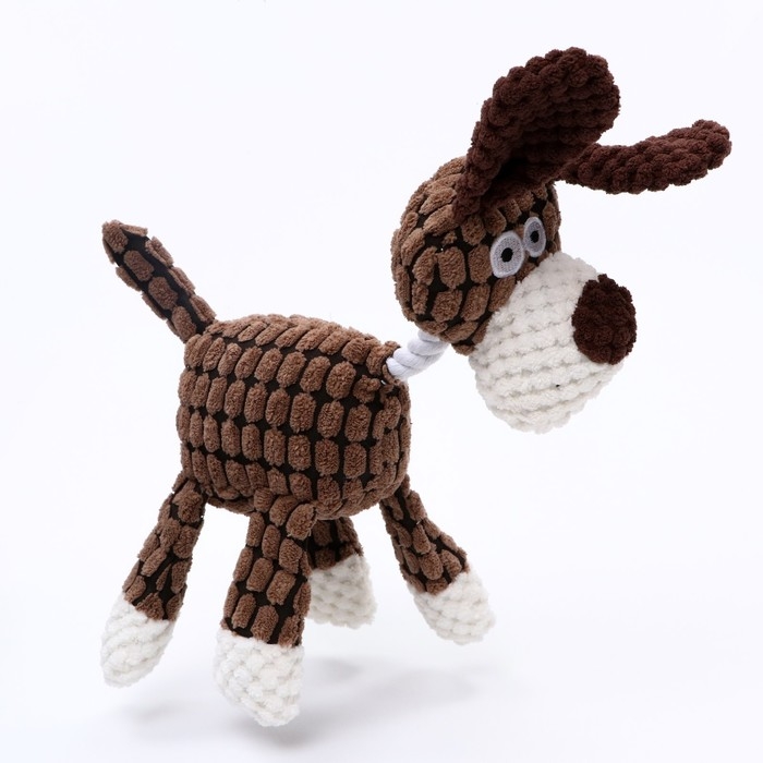Игрушка мягкая для собак "Пёс" с пищалкой и канатом, 39 х 11 см, коричневая