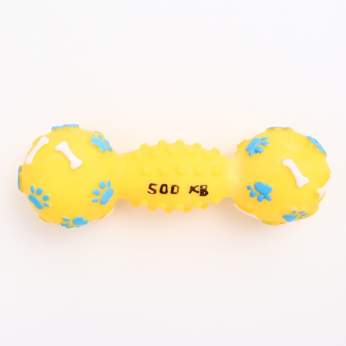 Игрушка пищащая "Гантель 500 kg", 17,5 см, жёлтая