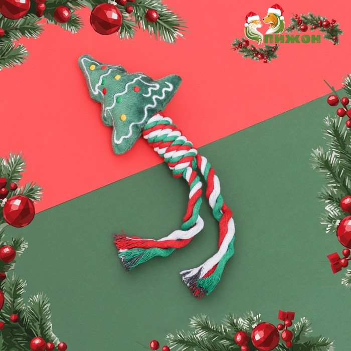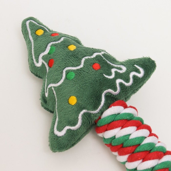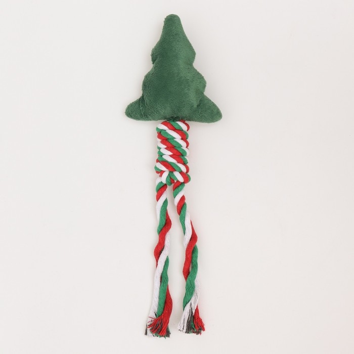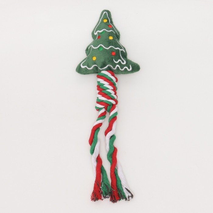 Игрушка пищащая, мягкая для собак "Ёлка" с канатом, 32 см