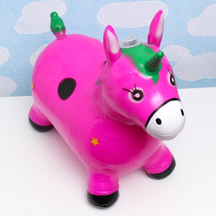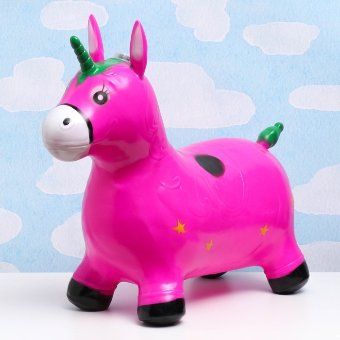 Игрушка - прыгун детская "Музыкальный Единорог" резиновая надувная, 50х30см, фиолетовый