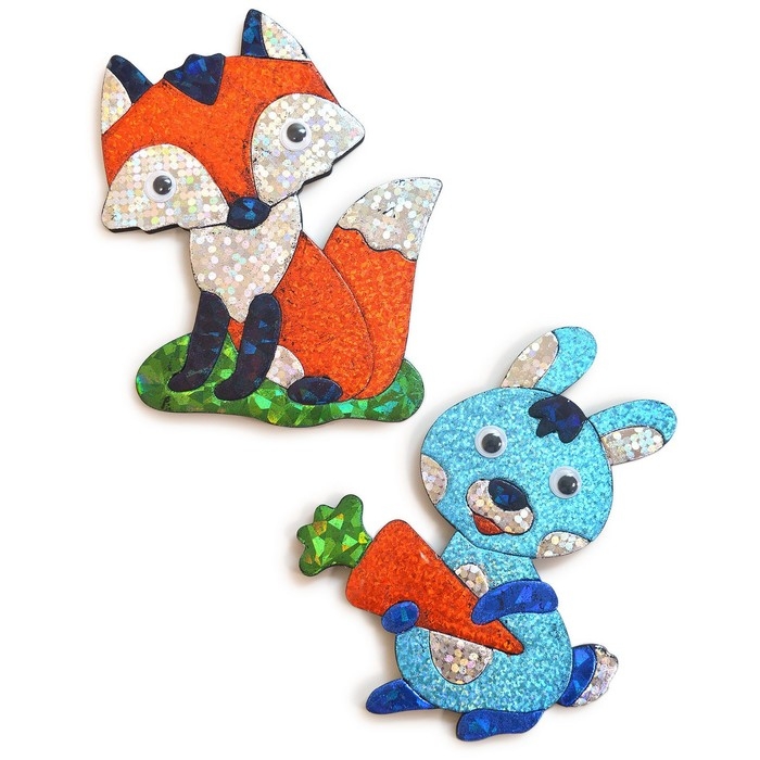 Игрушки на магнитах с фольгой «Зайчик, лисичка» — весёлая игрушка из ЭВА с магнитным винилом, раскрашенная с помощью фольги. Благодаря голографическому эффекту фольги, готовое изделие отличается необыкновенной яркостью и насыщенностью.