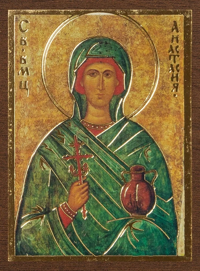Икона "Анастасия Узорешительница" 4х6 на МДФ-6
