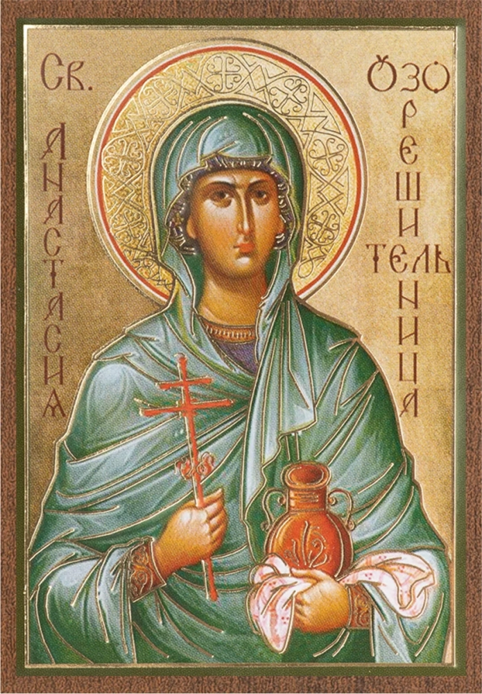 Икона "Анастасия Узорешительница" 6х9 на МДФ-6