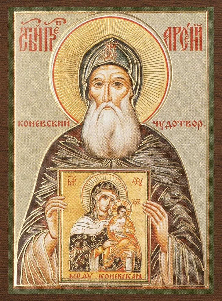 Икона "Арсений Коневский" 4х6 на МДФ-6