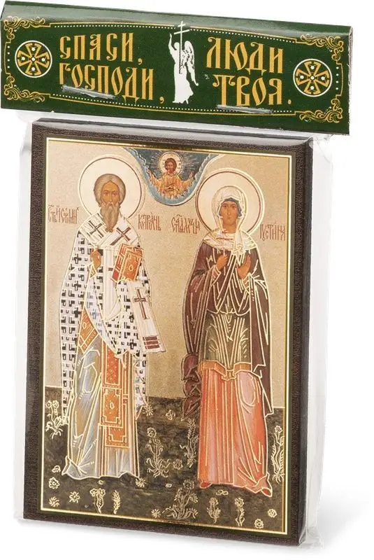 Икона "Киприан и Иустина" 6х9 на МДФ-6