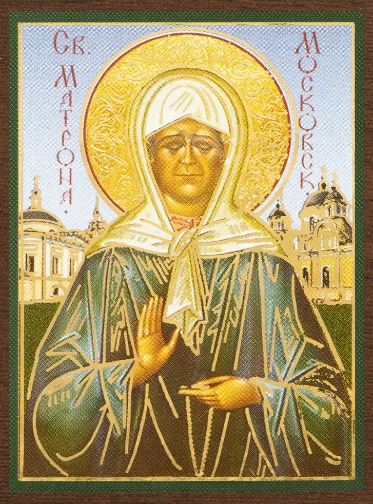 Икона "Матрона Московская" 4х6 на МДФ-6