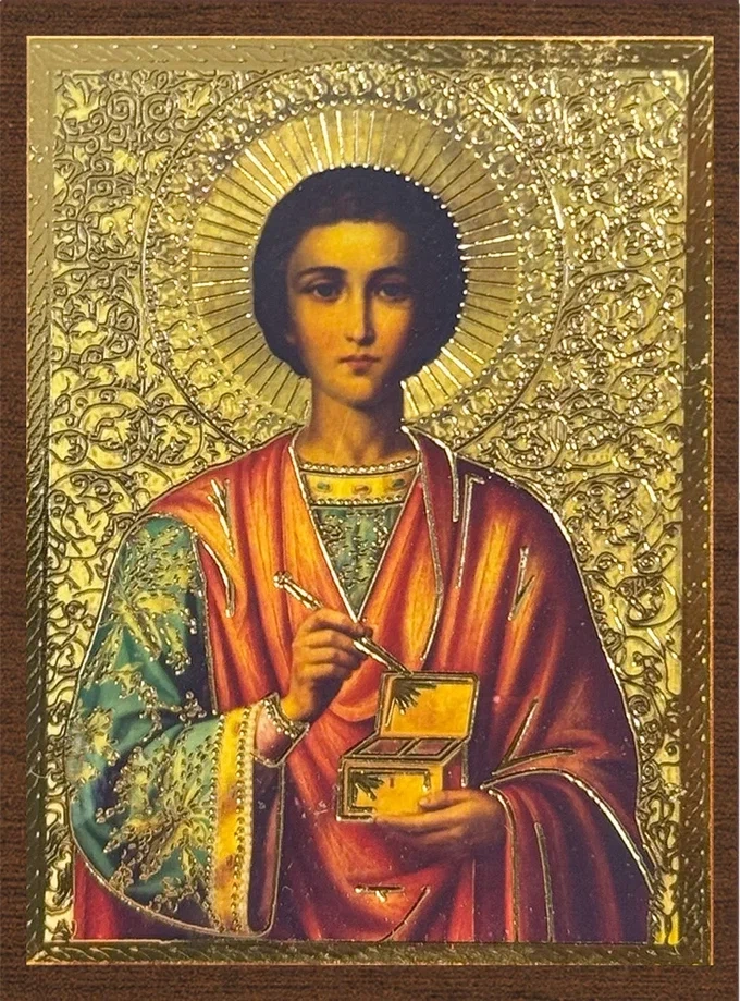 Икона "Пантелеймон Целитель", 4х6 на МДФ-6