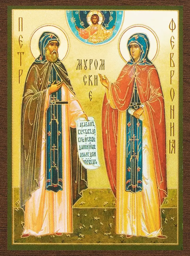 Икона "Петр и Феврония" 4х6 на МДФ-6