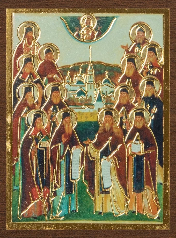 Икона "Собор преподобных Оптинских старцев" 4х6 на МДФ-6