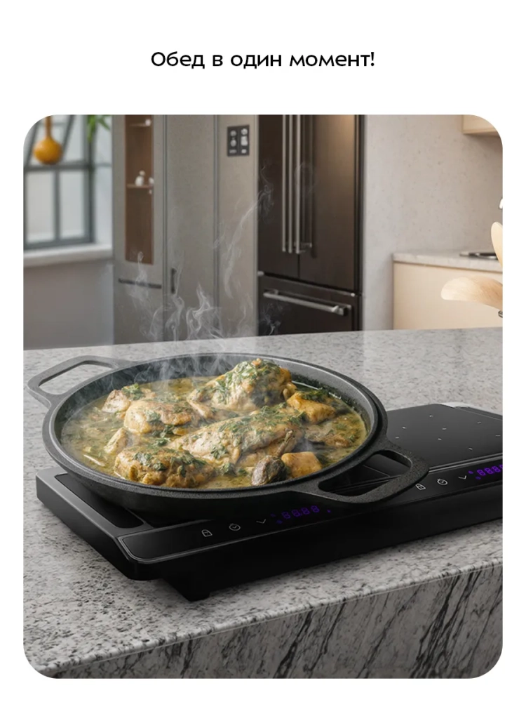 Эта индукционная плита — отличный выбор для тех, кто ценит безопасность, эффективность и современный дизайн. Она станет незаменимым помощником на вашей кухне, обеспечивая чистоту и удобство в приготовлении пищи. Подходит для использования как дома, так и в других помещениях, где требуется надежная и компактная кухонная техника.