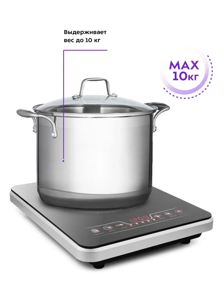 Индукционная плитка Китфорт КТ-102 имеет защиту от перегрева, выдерживает перепады напряжения.