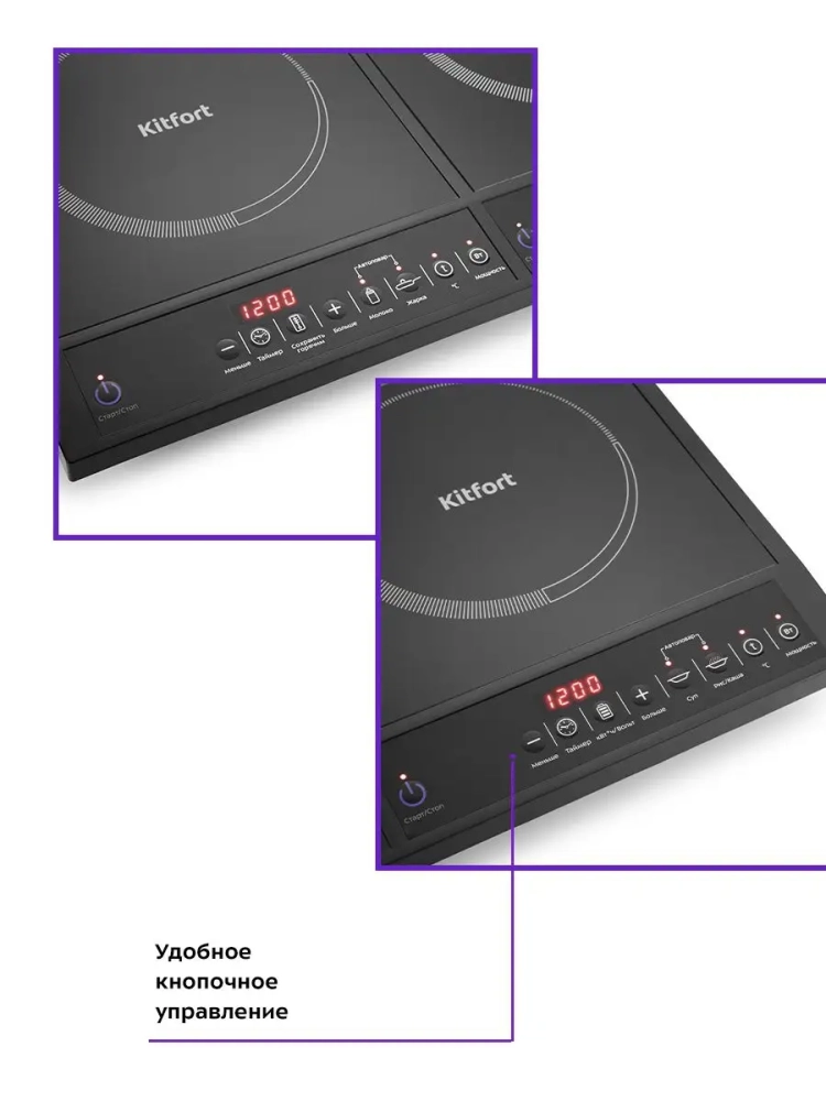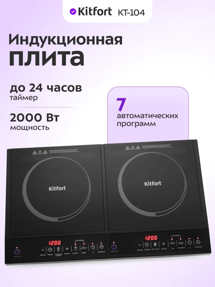 Настольная индукционная плита КТ-104 мощностью 4000 Вт — это идеальное решение для современных кухонь. Эта электрическая плита оснащена двумя независимыми конфорками, что делает её незаменимой для приготовления разнообразных блюд. Каждая конфорка имеет собственную кнопочную панель управления и яркий LED экран, обеспечивая удобство и точность в настройке параметров.