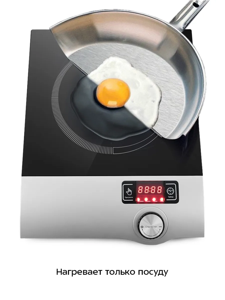 Индукционная плита Kitfort КТ-108 представляет собой один из новых экологически чистых кухонных приборов, разработанных по новейшим европейским, американским и японским технологиям. Индукционная плита имеет очень высокий коэффициент полезного действия (до 94 %), что существенно сокращает затраты на электроэнергию. Плита имеет защиту от перегрева. Для индукционной плиты подходит посуда с дном из ферромагнитных материалов: стальная, чугунная, эмалированная посуда, посуда из нержавеющей стали, а также любая другая, предназначенная для индукционного нагрева (обычно такая посуда имеет специальную маркировку). Рекомендуемый диаметр дна составляет 12-26 см, хотя возможно использовать посуду и других диаметров, вплоть до 7 см. Если посуда не подходит для индукционной плиты или диаметр дна слишком мал, то на дисплее отобразится код ошибки E8, и нагрев осуществляться не будет. Плитка КТ-108 выдерживает вес не более 10 кг.