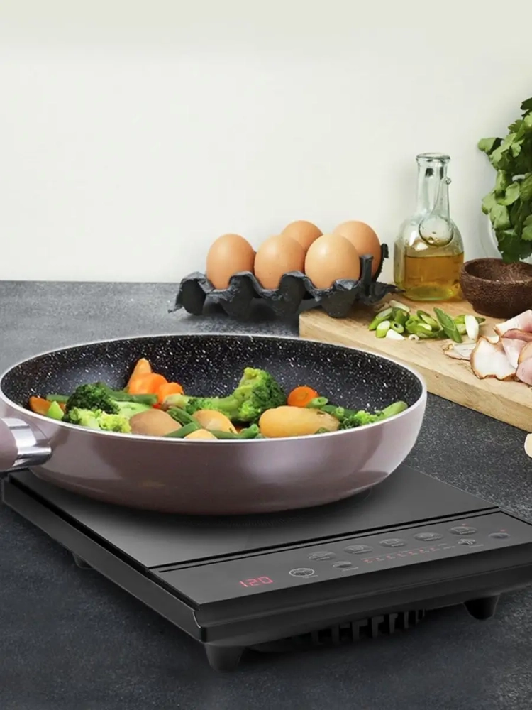 Для индукционной плиты подходит посуда с дном из ферромагнитных материалов: стальная, чугунная, эмалированная посуда, посуда из нержавеющей стали, а также любая другая, предназначенная для индукционного нагрева (обычно такая посуда имеет специальную маркировку). Подходящую посуду легко определить с помощью магнита — если он примагничивается к дну, такая посуда, скорее всего, подойдет. Для удобства в комплекте с плитой идет подарочный магнит с фирменным логотипом, которым вы можете воспользоваться для проверки.