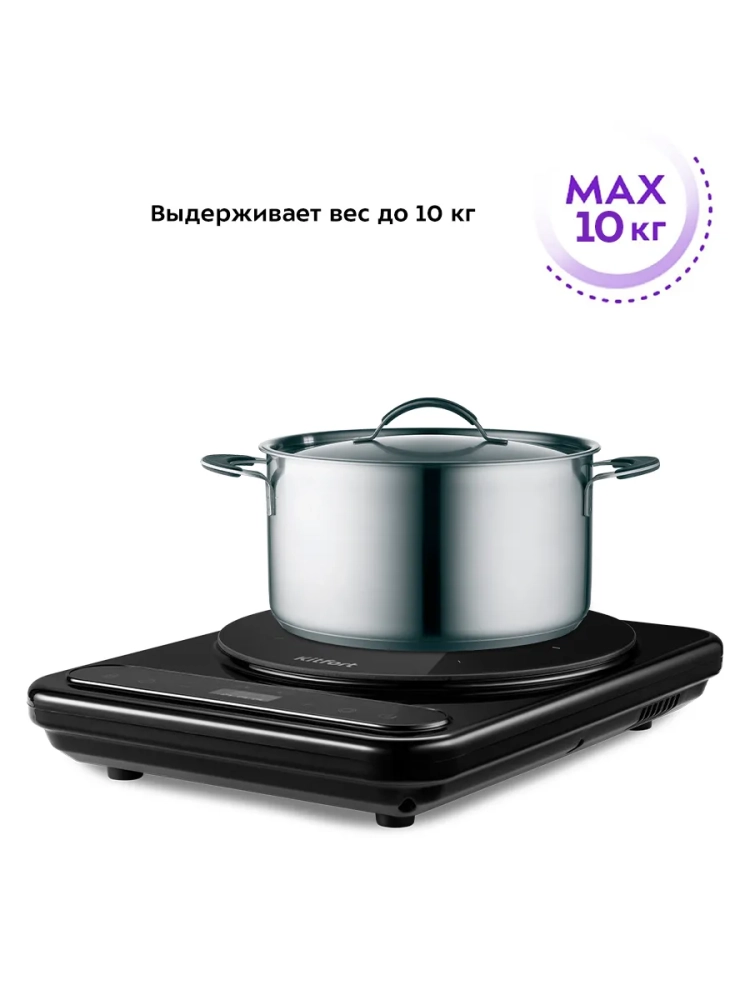 Плита Kitfort КТ-163 выполнена в пластиковом корпусе с рабочей поверхностью из стеклокерамики и обладает максимальной мощностью 1400 Вт. На низких уровнях мощности регулировка мощности осуществляется плавнее, чем у обычных плит, а импульсно-периодический режим включается только на уровнях менее 1000 Вт. Эта индукционная плита поможет сделать жизнь вашей семьи более безопасной и здоровой и принесет чистоту на вашу кухню. Индукционная плита Kitfort КТ-163 имеет защиту от перегрева. Плита КТ-163 выдерживает перепады напряжения и может работать как при повышенном, так и при пониженном напряжении питания. Для индукционной плиты подходит посуда с дном из ферромагнитных материалов: стальная, чугунная, эмалированная посуда, посуда из нержавеющей стали, а также любая другая, предназначенная для индукционного нагрева (обычно такая посуда имеет специальную маркировку). Подходящую посуду легко определить с помощью магнита — если он примагничивается к дну, такая посуда, скорее всего, подойдет. Однако тест с магнитом не дает 100% гарантии, ориентируйтесь на информацию от производителя посуды. Для удобства в комплекте с плитой идет подарочный магнит с фирменным логотипом, которым вы можете воспользоваться для проверки. Рекомендуемый диаметр дна составляет 12–22 см, хотя возможно использовать посуду и других диаметров, вплоть до 10 см. Обычно не подходит для приготовления на индукционной плите посуда, которая не намагничивается. Не используйте термостойкое стекло, керамическую, медную и алюминиевую посуду, а также посуду из немагнитной нержавеющей стали. Также не применяйте посуду со сферическим, неплоским дном или посуду с ножками. Если посуда не подходит для индукционной плиты или диаметр дна слишком мал, то плита будет подавать звуковой сигнал, на дисплее будет отображаться ошибка «E0», и нагрев осуществляться не будет. Плита КТ-163 выдерживает вес не более 5 кг.