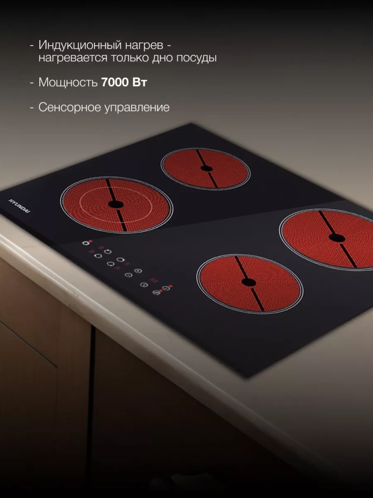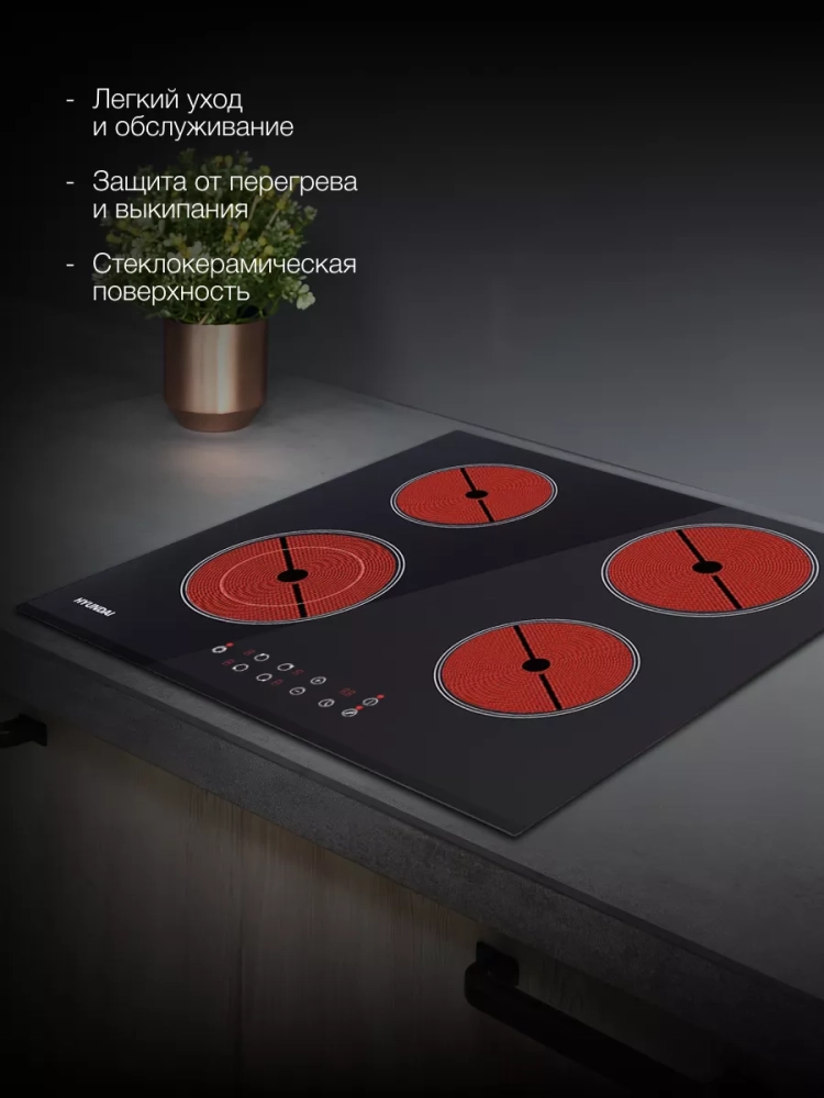 Индукционная варочная поверхность Hyundai HHI 6740 BG черный, независимая установка, материал поверхности стеклокерамика, индукционных конфорок 4