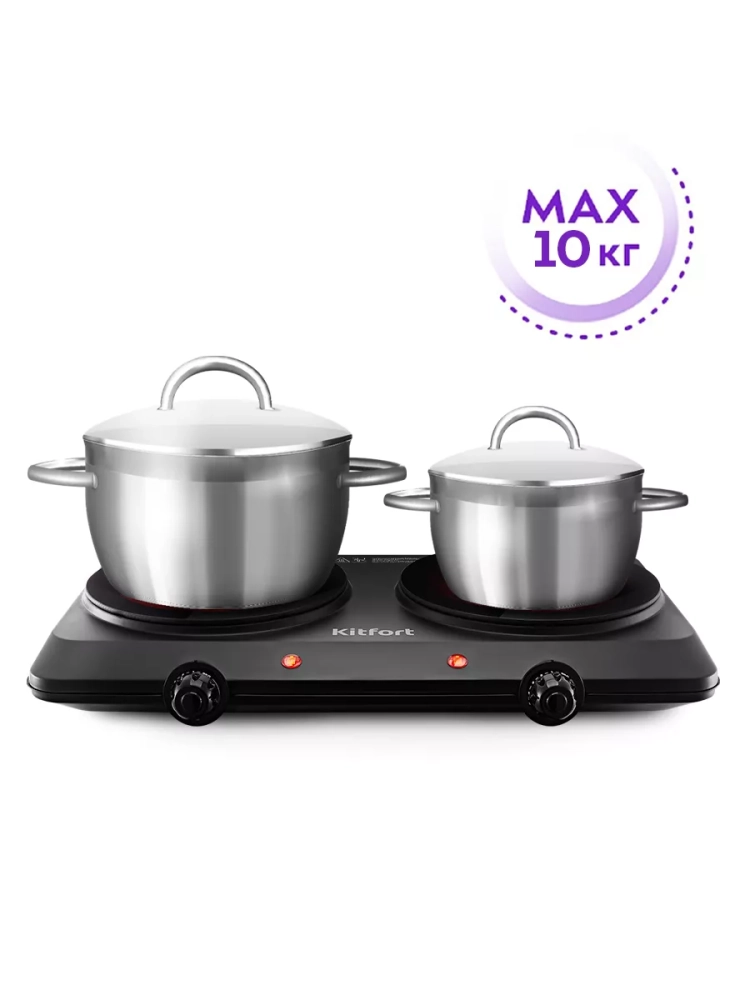 Эта электроплитка подходит для использования с различными кухонными приборами, такими как сковороды и кастрюли. Плита оснащена удобной системой управления, которая позволяет точно регулировать температуру нагрева. Электрическая плита Kitfort — это не просто техника, это надежный помощник на вашей кухне.