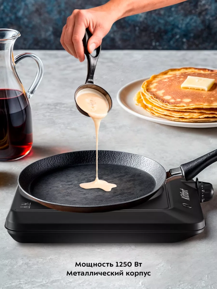 Плита КТ-170 выполнена в металлическом корпусе с рабочей поверхностью из стеклокерамики и обладает максимальной мощностью 1200 Вт. Инфракрасная плита позволяет легко жарить блины и готовить практически любые блюда на любой посуде, в том числе на тонких алюминиевых сковородах.