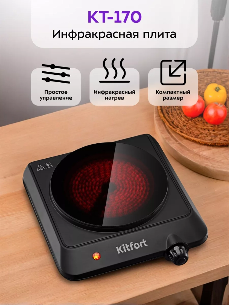 Инфракрасная плита представляет собой один из новых экологически чистых кухонных приборов. Инфракрасная плита Kitfort КТ-170 соответствует требованиям государственного стандарта и подходит для приготовления любых блюд.