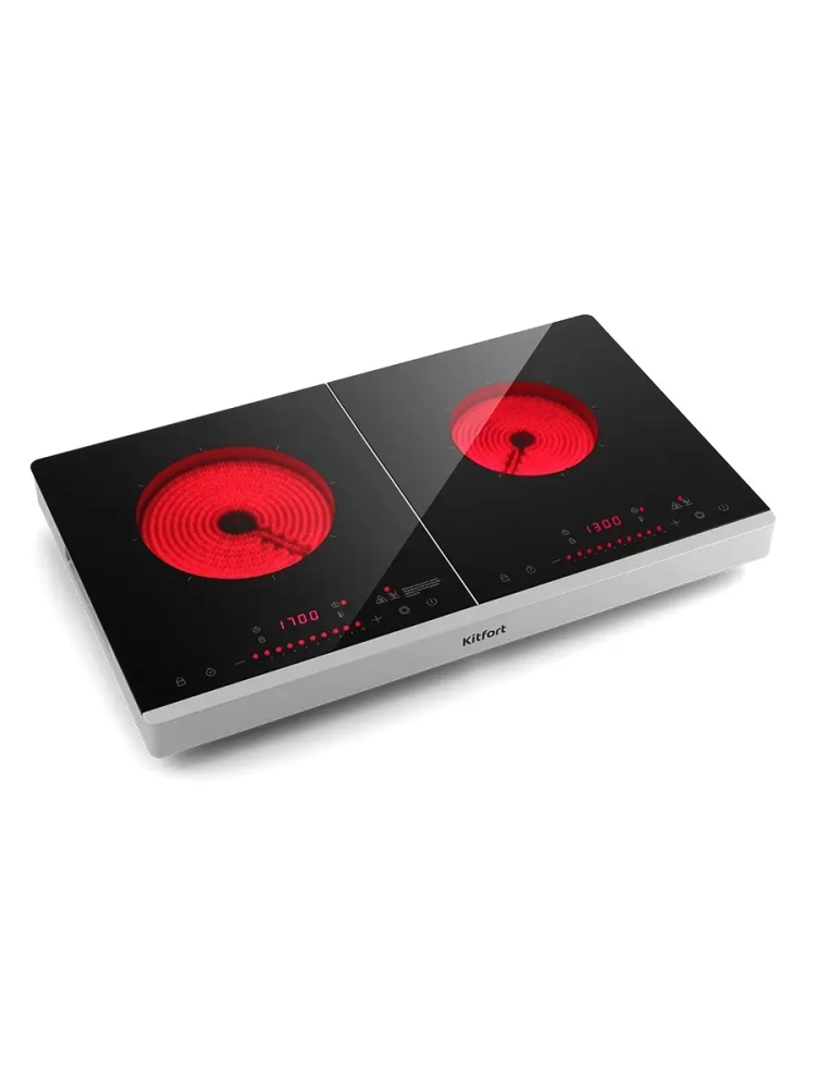Инфракрасная технология нагрева обеспечивает равномерное распределение тепла по всей поверхности конфорки, что позволяет готовить пищу с минимальными потерями энергии. Настольные индукционные плиты Kitfort — это надежная и долговечная техника, которая станет незаменимым помощником на вашей кухне.