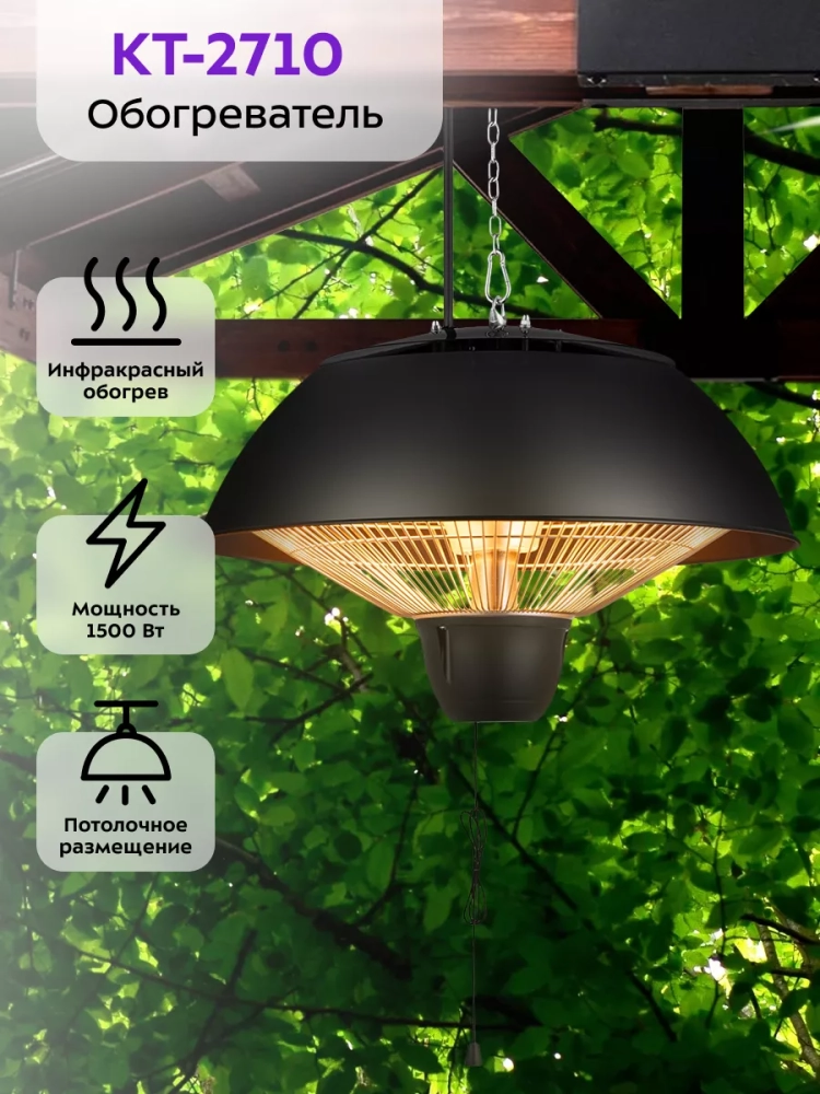 Инфракрасный обогреватель Kitfort KT-2710 мощностью 1500 Вт — это современное бытовое решение для создания комфортного микроклимата в вашем доме или на даче. Этот электрообогреватель предназначен для эффективного обогрева воздуха в квартирах, офисах, загородных домах и на верандах. Благодаря инфракрасной технологии, он обеспечивает равномерное распределение тепла по всей площади помещения до 15 кв.м., что делает его идеальным выбором как для внутреннего использования, так и для уличных условий. Обогреватель относится к потолочному типу устройств и оснащен цепью-подвесом для удобного крепления на потолке. Это позволяет экономить пространство и обеспечивает более эффективное распределение тепловых потоков. Электрообогреватель экономичен и прост в управлении благодаря интуитивно понятным элементам управления и защите от брызг IP34, что делает его безопасным даже при использовании на улице. Энергосберегающий режим работы нагревателя позволяет снизить затраты на электроэнергию без потери эффективности обогрева. Техника отличается высокой надежностью и долговечностью, что делает её отличным выбором как для дома, так и для дачи. Потолочный монтаж обеспечивает максимальную эффективность работы устройства за счет оптимального распределения тепловых лучей по всей площади помещения. Этот инфракрасный обогреватель идеально подходит не только для жилых помещений, но также может быть использован в коммерческих целях благодаря своей универсальности. Он станет незаменимым помощником в холодные дни года.