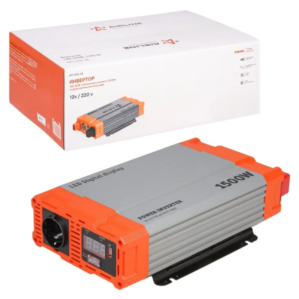 Инвертор автомобильный 12В-220В, 1500 Вт
