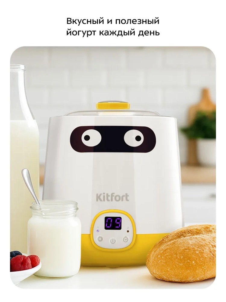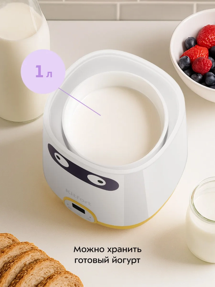 Эта модель йогуртницы позволяет экспериментировать с различными рецептами, создавая как густые, так и питьевые йогурты. Вы можете добавлять в йогурт свежие фрукты, ягоды или мёд, чтобы разнообразить вкус и повысить питательную ценность. Электрическая йогуртница Kitfort — это не только удобство, но и возможность контролировать состав продукта, исключая консерванты и искусственные добавки.