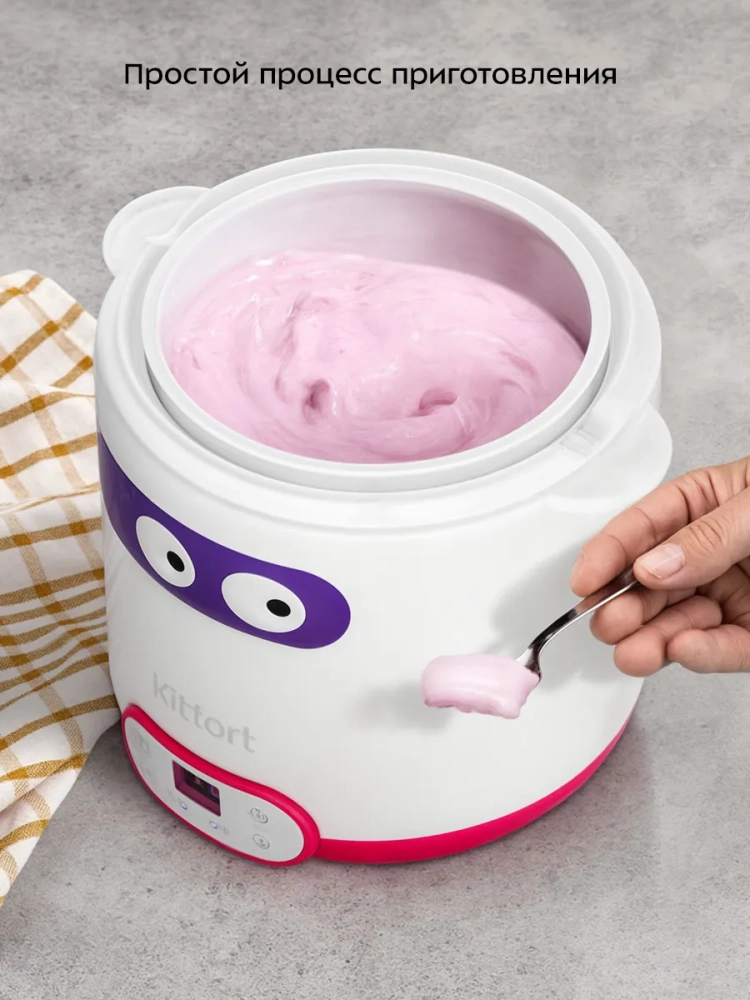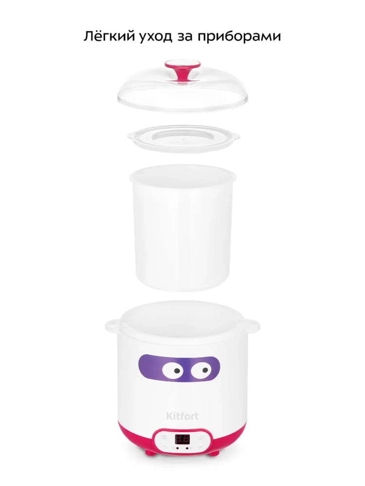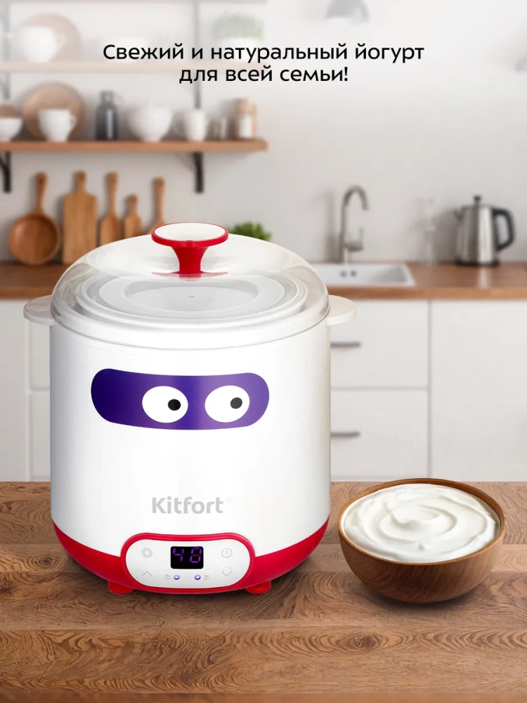 Йогуртница Kitfort КТ-6402 предназначена для приготовления вкусного и полезного домашнего йогурта, творога, питьевого йогурта или любого другого молочного продукта. Прибор укомплектован чашей на 1,5 л с пластиковой крышкой. Готовый йогурт можно хранить в холодильнике прямо в чаше.