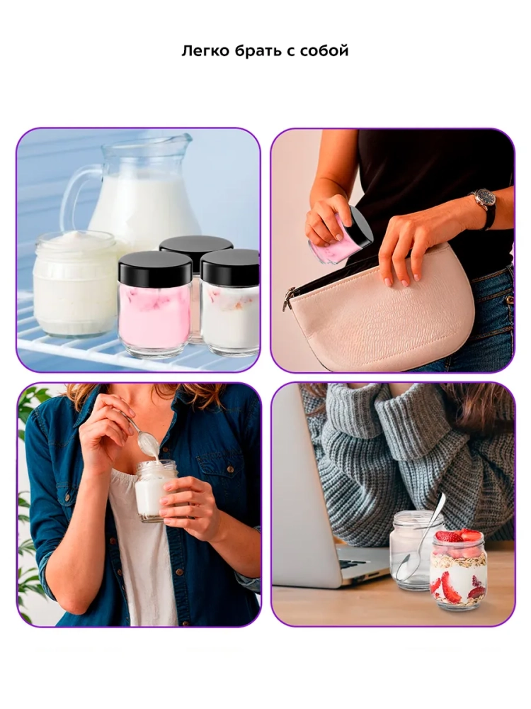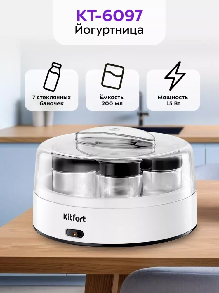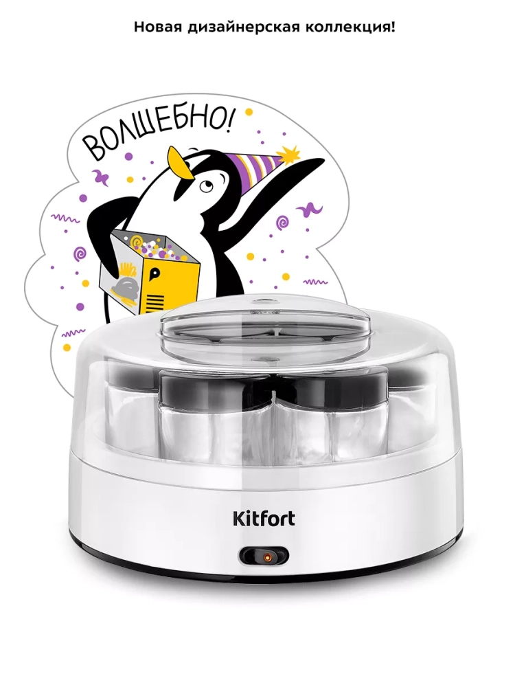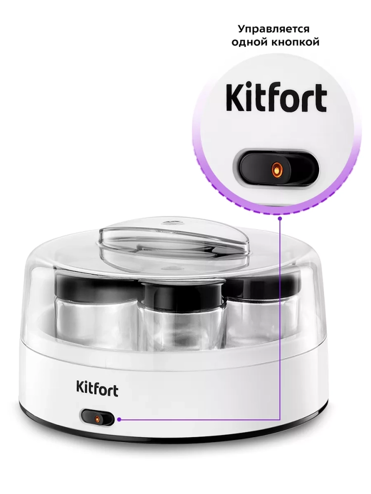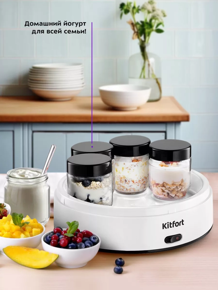 Эта кухонная техника позволяет экспериментировать с различными заквасками и смесями, создавая уникальные вкусы. Йогуртница Kitfort — это надежный помощник на вашей кухне, который обеспечит вас и вашу семью свежими и полезными йогуртами каждый день. Благодаря компактным размерам, она легко разместится на любой кухне, а стеклянные банки с крышками можно хранить как в холодильнике, так и в морозилке.