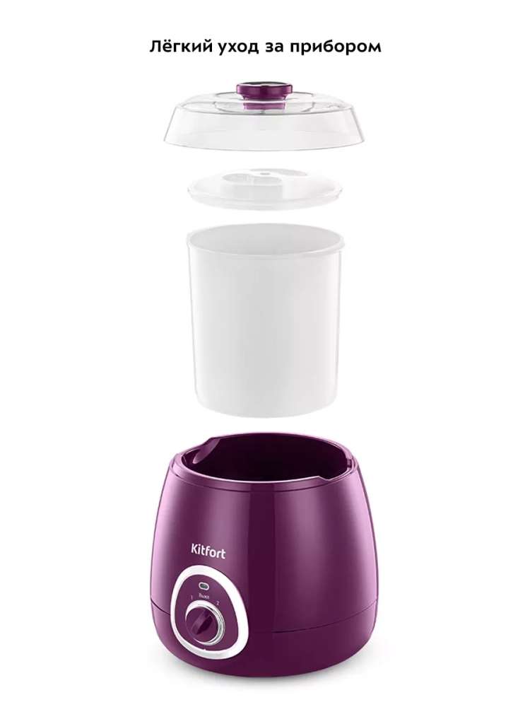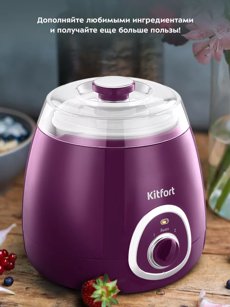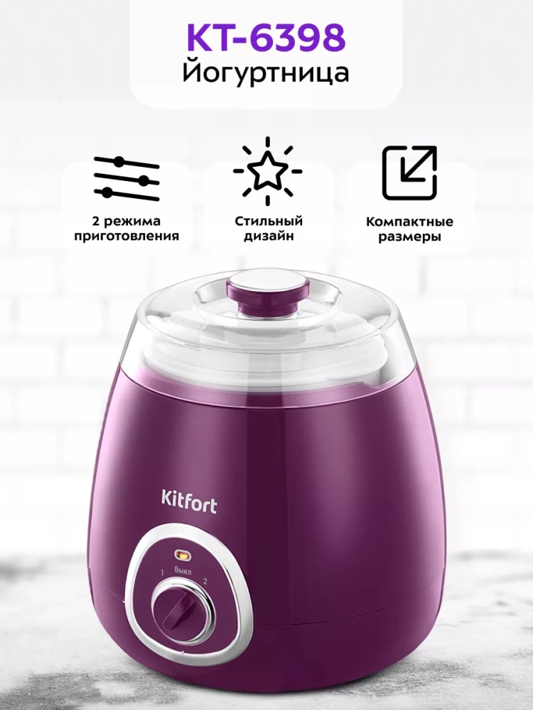 Йогуртница Kitfort КТ-6398 предназначена для приготовления вкусного и полезного домашнего йогурта. Прибор укомплектован чашей емкостью 1 литр с пластиковой крышкой. Готовый йогурт можно хранить в холодильнике прямо в чаше. Йогуртница равномерно нагревает чашу с ингредиентами, поддерживая необходимую температуру.