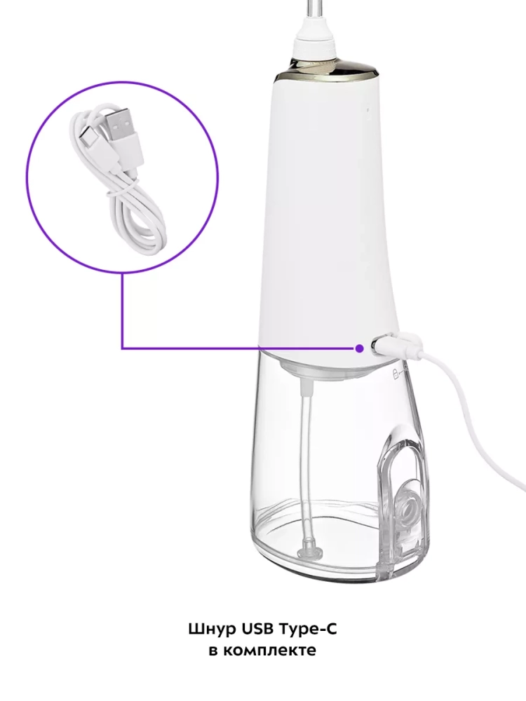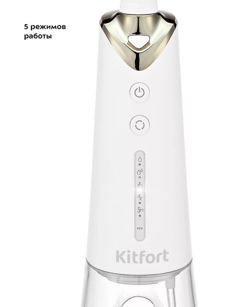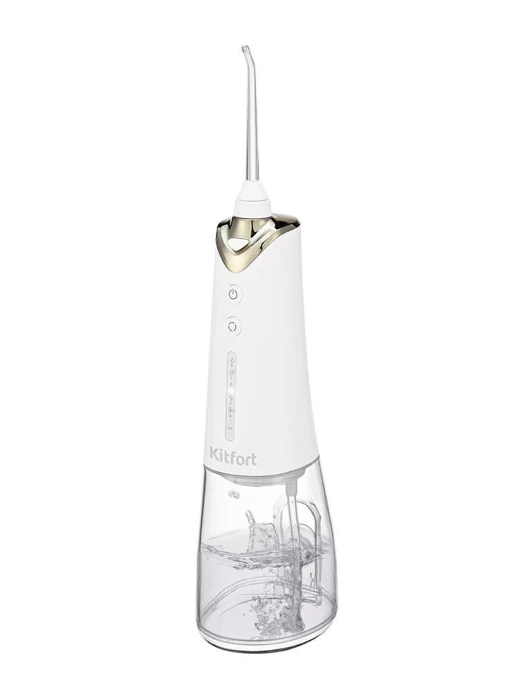 Ирригатор KT-2942 — это прибор для ухода за полостью рта. Он очень прост в использовании: налейте воду (или специальный раствор для полоскания зубов) в резервуар, выберите подходящий вам режим и начинайте очистку. Модель Kitfort KT-2942 является портативным ирригатором, его можно брать с собой в путешествия или на работу — он с легкостью поместится в небольшую сумку. У ирригатора 2 кнопки — кнопка включения/выключения и кнопка «Режим». У прибора всего 5 режимов работы — «Мягкий», «Нормальный», «Вручную», «Импульсный» и «Смешанный». Если вы до этого не пользовались ирригатором, начните с самого слабого режима «Мягкий», т.к. неподготовленные и чувствительные десны могут начать кровоточить из-за сильного и тонкого потока воды. Когда десны привыкнут и окрепнут, вы можете переходить на более сильные режимы. При работе на корпусе ирригатора светится индикатор выбранного режима. Прибор автоматически отключается после 2 минут использования. У ирригатора есть резервуар для воды емкостью 280 мл, чего хватает для тщательной обработки полости рта.В комплекте к ирригатору идут насадки: две классические струйные насадки, насадка для удаления зубного камня и налета из-под линии десны, насадка с щеточкой для удаления налета и насадка для чистки языка. Заряжать прибор с помощью шнура USB Type-C можно от компьютера, пауэрбанка или блока питания. В профилактических целях ирригатор нужен каждому взрослому человеку. Ирригатор не заменяет собой зубную щетку, он является частью комплексного ухода за полостью рта. Комплексный уход для вас должен подобрать ваш лечащий врач-стоматолог, обычно уход включает в себя: ирригацию, чистку зубов зубной щеткой и ершиками, полоскание рта ополаскивателем и использование зубной нити, если это необходимо. Этот прибор рекомендуют стоматологи во всем мире.