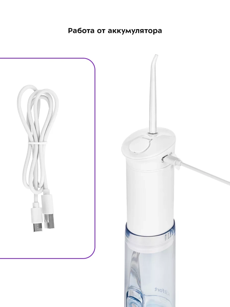 Модель Kitfort KT-2985 является портативным ирригатором, его можно брать с собой в путешествия или на работу — он с легкостью поместится в небольшую сумку. В комплекте есть чехол, в котором удобно хранить и перевозить устройство.