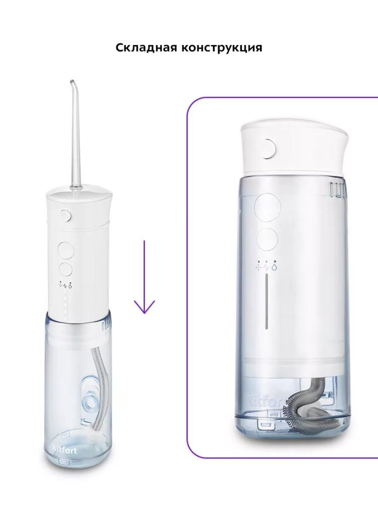 Ирригатор Kitfort KT-2985 — это прибор для ухода за полостью рта. Он очень прост в использовании: налейте воду (или специальный раствор для ирригаторов) в резервуар, выберите подходящий вам режим и начинайте очистку.