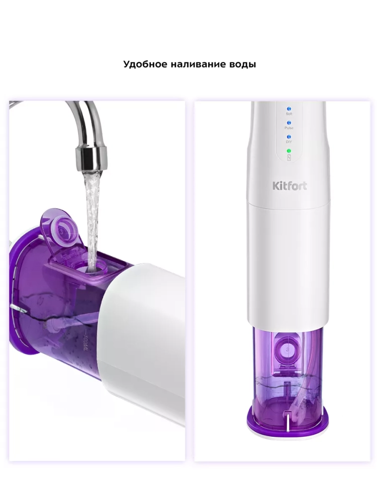 Ирригатор Kitfort КТ-2912 — это прибор для ухода за полостью рта. Он очень прост в использовании: налейте воду (или специальный раствор для полоскания зубов) в резервуар, выберите подходящий вам режим и начинайте очистку.