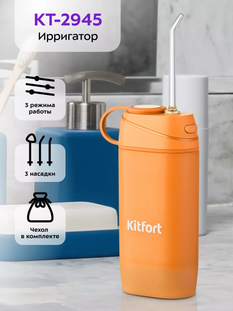 Ирригатор Kitfort KT-2945 — это прибор для ухода за полостью рта. Он очень прост в использовании: налейте воду (или специальный раствор — жидкость для ирригатора) в резервуар, выберите подходящий вам режим и начинайте очистку.