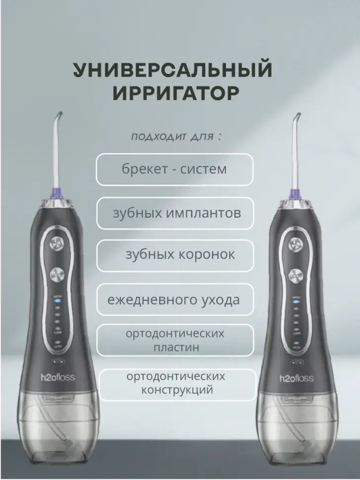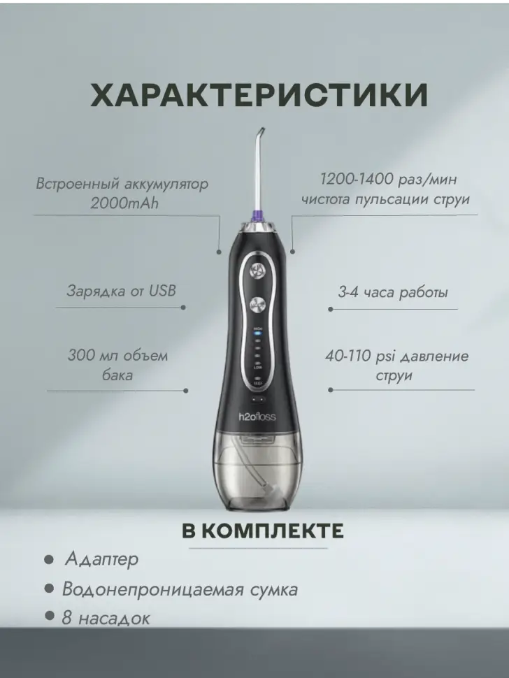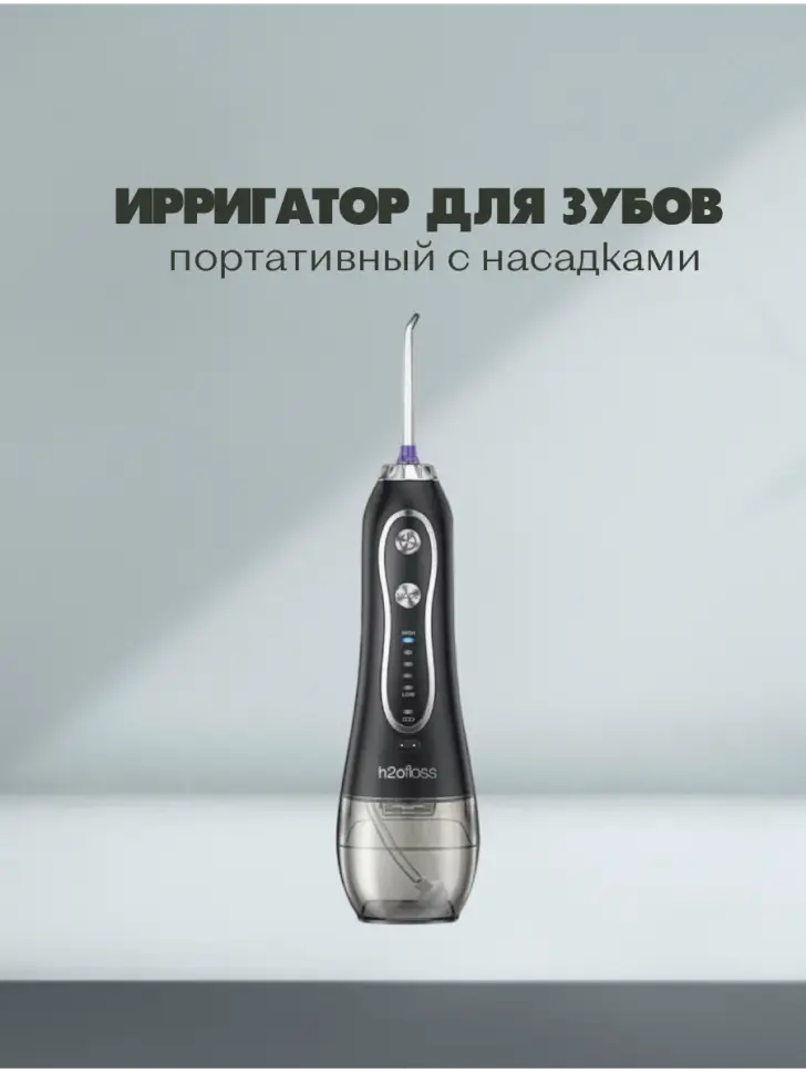Ирригатор для зубов портативный с насадками H2oFloss Черный