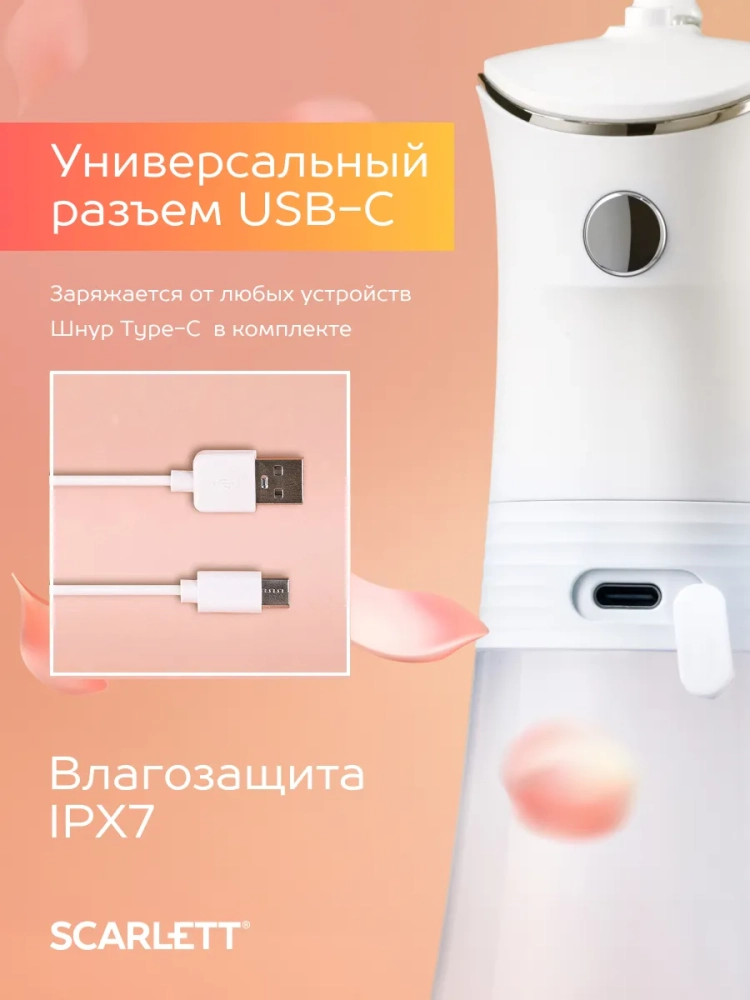 Ирригатор Scarlett – это стильный предмет интерьера, который гармонично вписывается в вашу ванную комнату. Мы знаем, как важна эстетика, поэтому каждый элемент дизайна продуман до мелочей. Минималистичный современный стиль делают ирригатор для зубов не просто исключительным инструментом для ухода, но и истинным украшением вашего пространства.