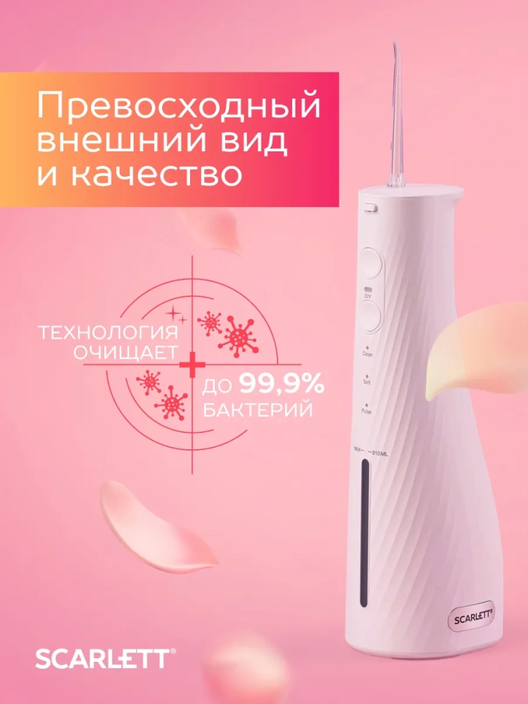Новая линейка ирригаторов Scarlett — идеальное сочетание функциональности и эстетики, созданных с заботой о вашем здоровье и красоте. Вдохновленные современными трендами, мы предлагаем решения, которые сделают процесс ухода за зубами не только эффективным, но и приятным.