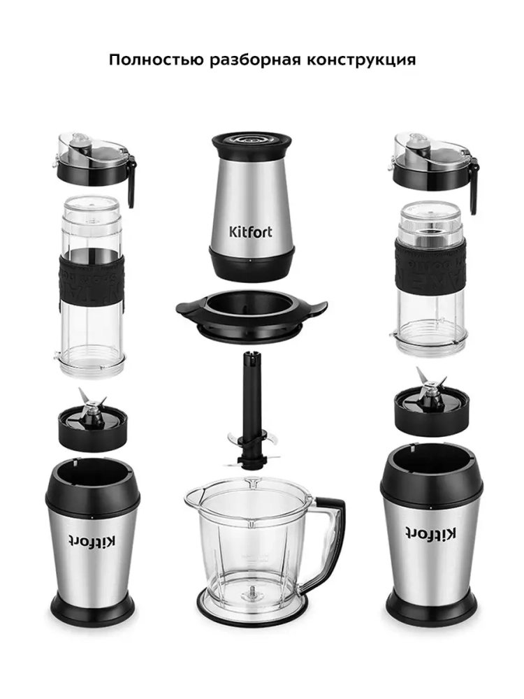 Измельчитель «2 в 1» Kitfort КТ-3507 сочетает в себе функции двух устройств: измельчителя и блендера Shake & Take (шейк энд тэйк) с двумя портативными бутылками.