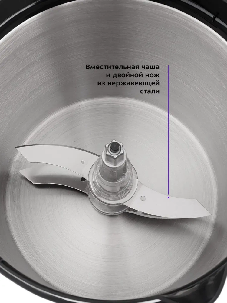 Легкая и вместительная чаша измельчителя сделана из нержавеющей стали.