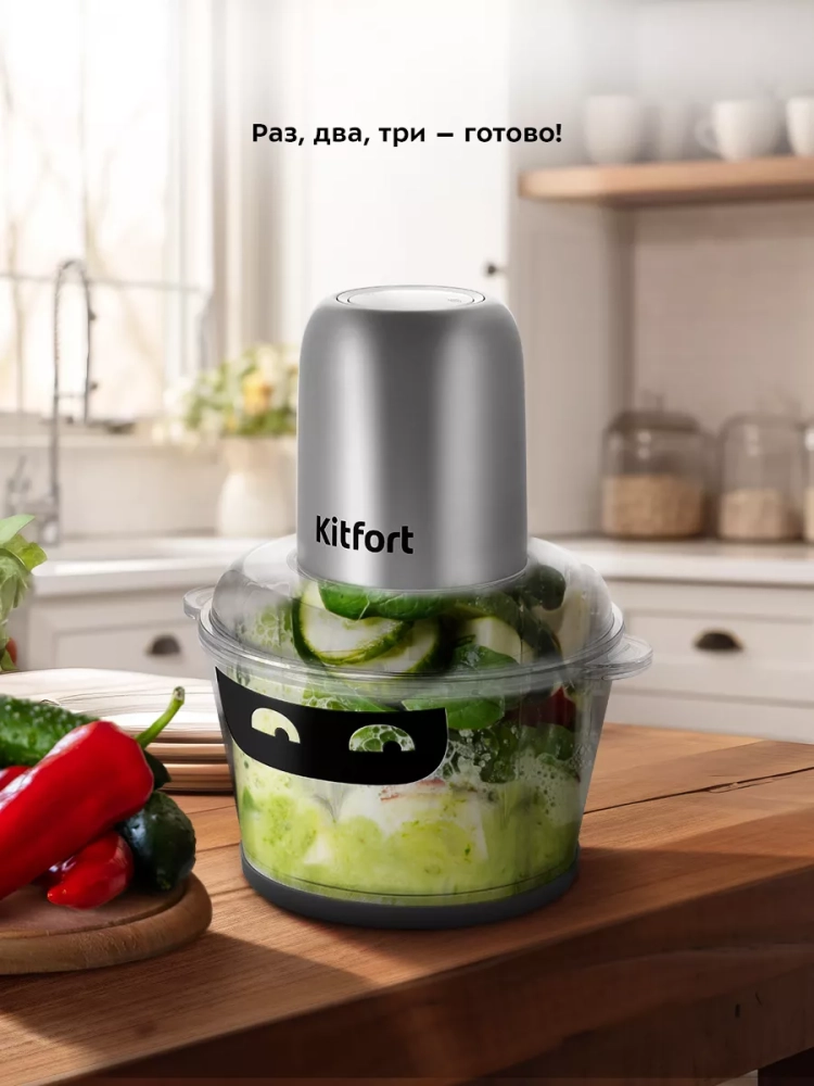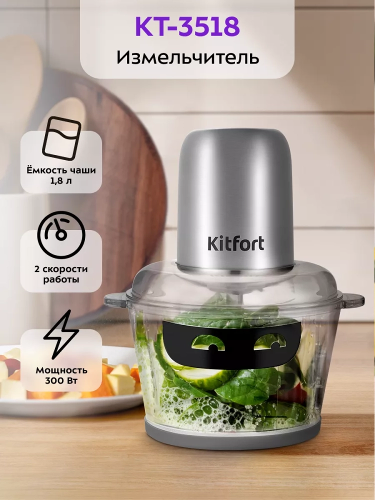 Измельчитель Kitfort КТ-3518 — устройство для быстрого измельчения мяса, овощей, фруктов, чеснока, ягод и многих других продуктов. Два блока двойных ножей измельчают ингредиенты практически по всей высоте чаши, поэтому процесс измельчения пищи происходит намного быстрее, чем при использовании ручных кухонных приспособлений. Любой салат будет готов за считанные минуты. Все что потребуется — подготовить продукты для резки и следить за степенью измельчения.