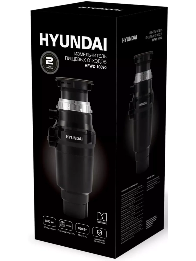 Измельчитель пищевых отходов Hyundai HFWD 10390 390Вт черный /черный.Измельчитель пищевых отходов; Руководство пользователя; Гарантийный талон