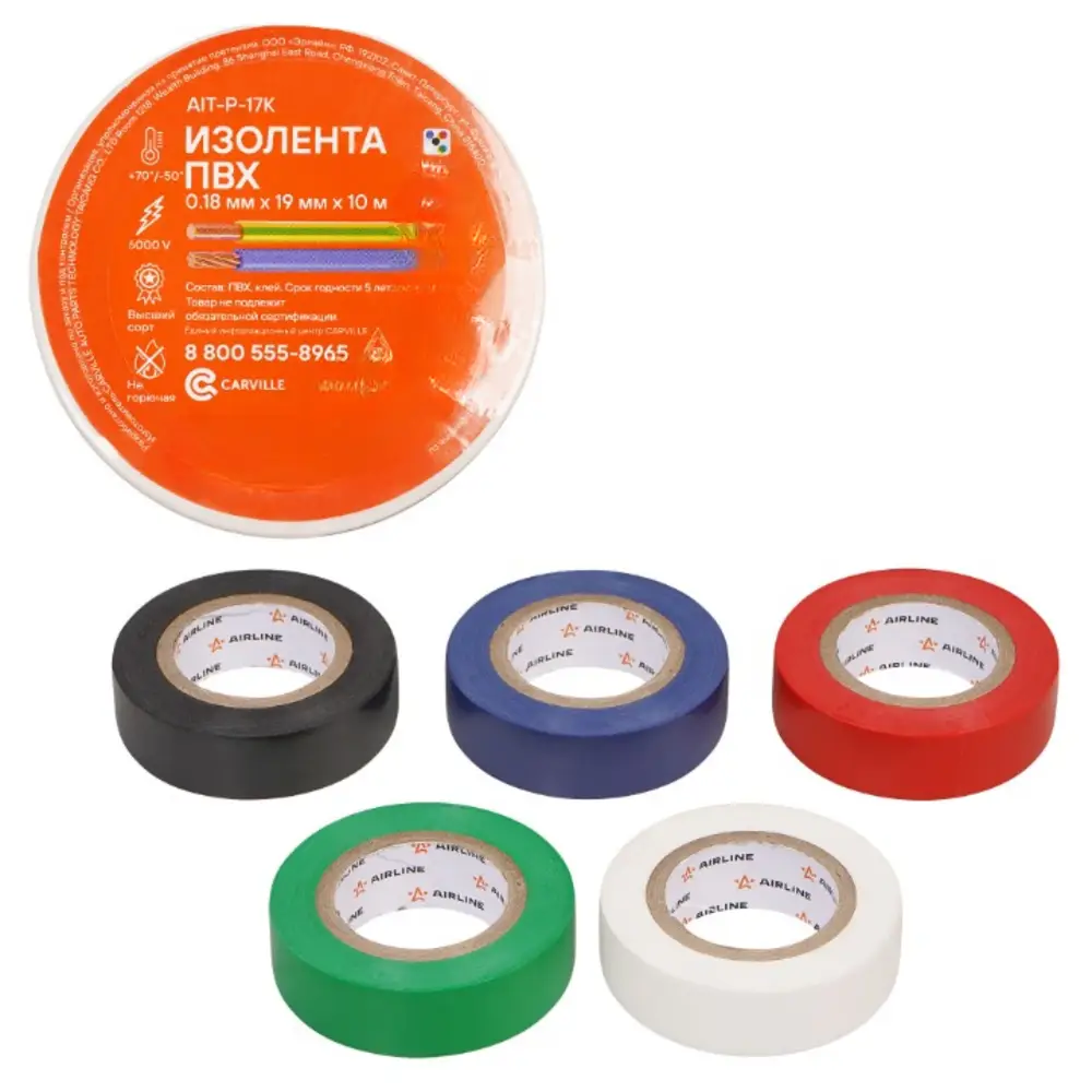 Изолента AIRLINE изготавливается из поливинилхлоридной пленки с нанесённым на неё клеевым слоем и полностью соответствует ГОСТу-16214-86.