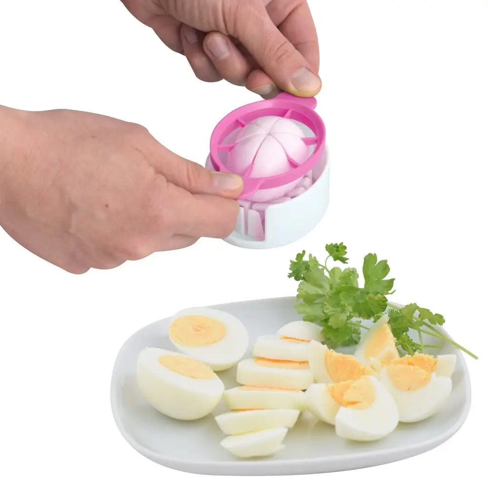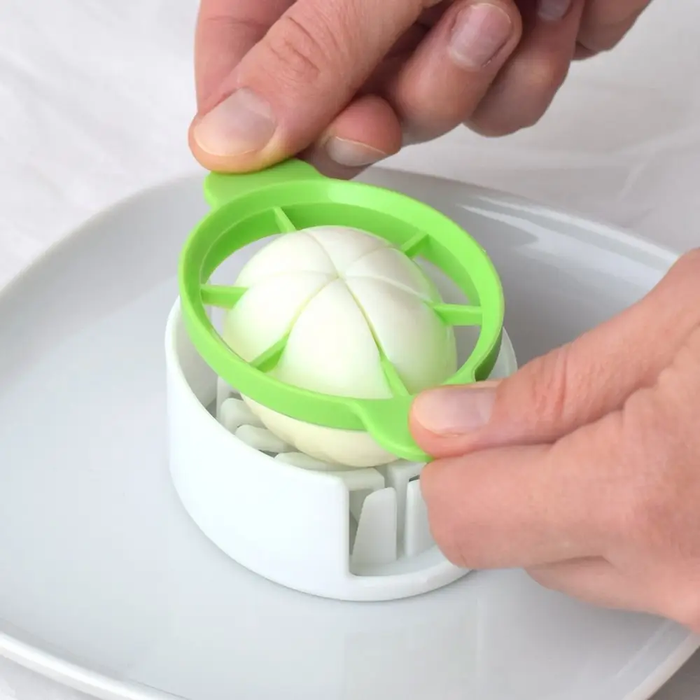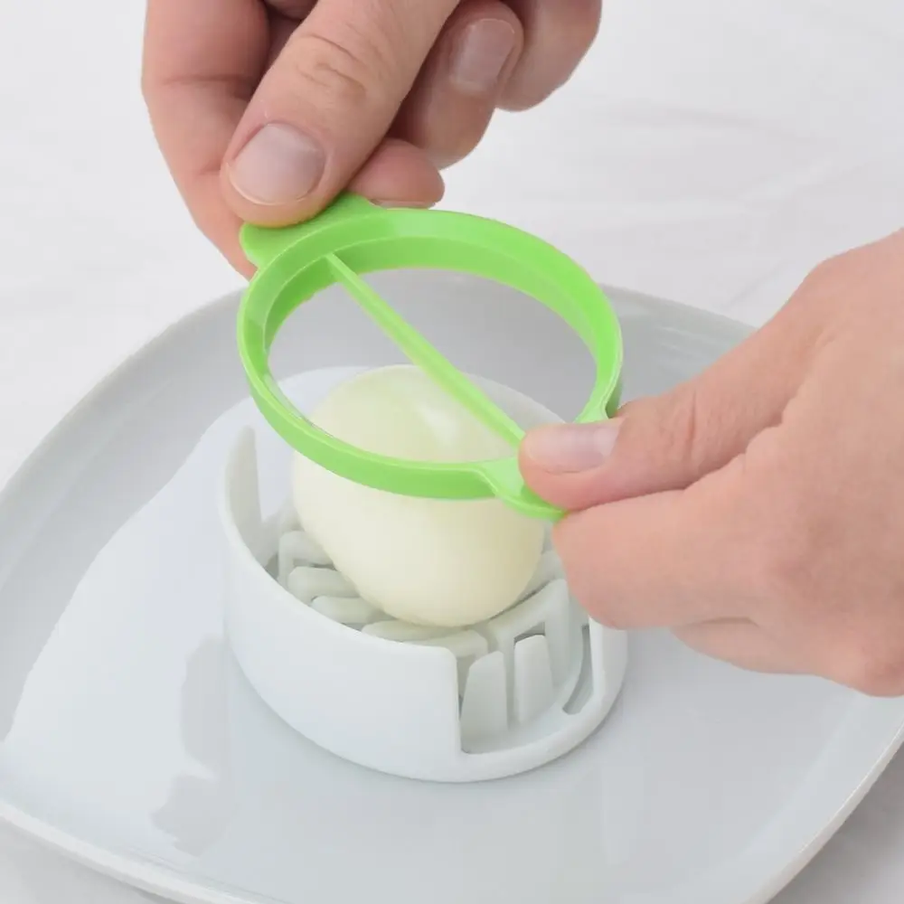 Яйцерезка позволяет аккуратно нарезать яйцо пололам, на дольки или ломтики. Проста в использовании. Разместите яйцо на подставке, выберите насадку и разрежьте яйцо. Подходит также для разрезания мягких фруктов и овощей небольшого размера. После использования промойте яйцерезку под проточной водой, можно с использованием жидких моющих средств. Изготовлено из пластмассы (ABS).