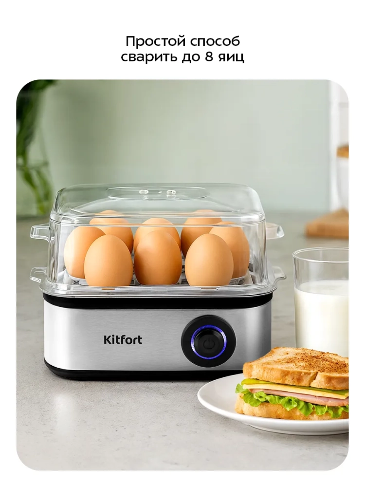 Форма устройства также способствует легкой очистке после использования. Все съемные части можно мыть в посудомоечной машине, что упрощает уход за прибором. Яйцеварка Kitfort — это надежный помощник на кухне, который гарантирует идеальный результат каждый раз.