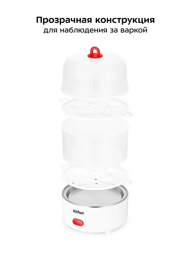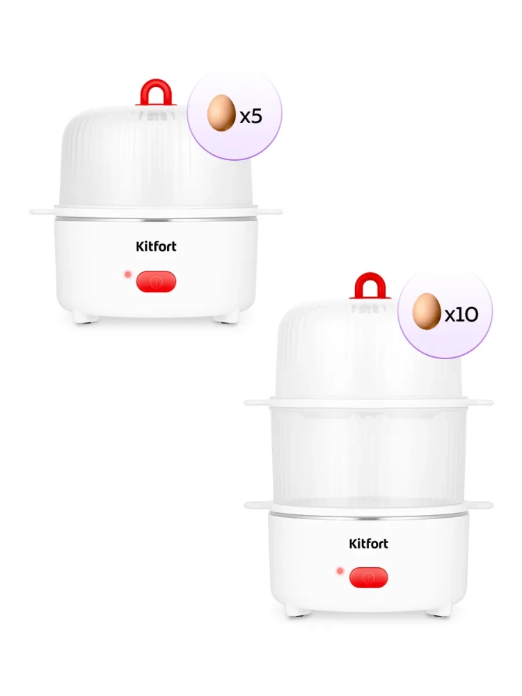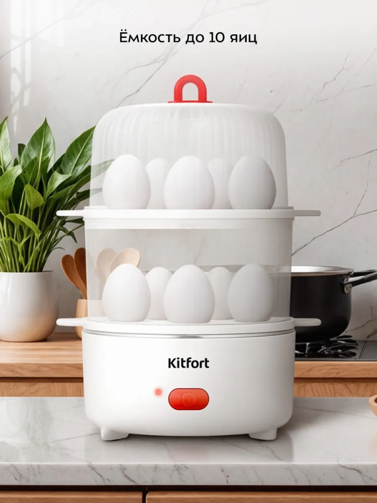 Яйцеварка Kitfort КТ-6960 предназначена для варки яиц на пару. Вареные яйца — неотъемлемый элемент вкусного, полезного, а самого главное, простого завтрака. Иногда в утренней спешке не получается аккуратно положить яйца в кастрюлю с водой или вода слишком горячая, и яйца бьются друг о друга. При использовании яйцеварки этих проблем не возникнет.