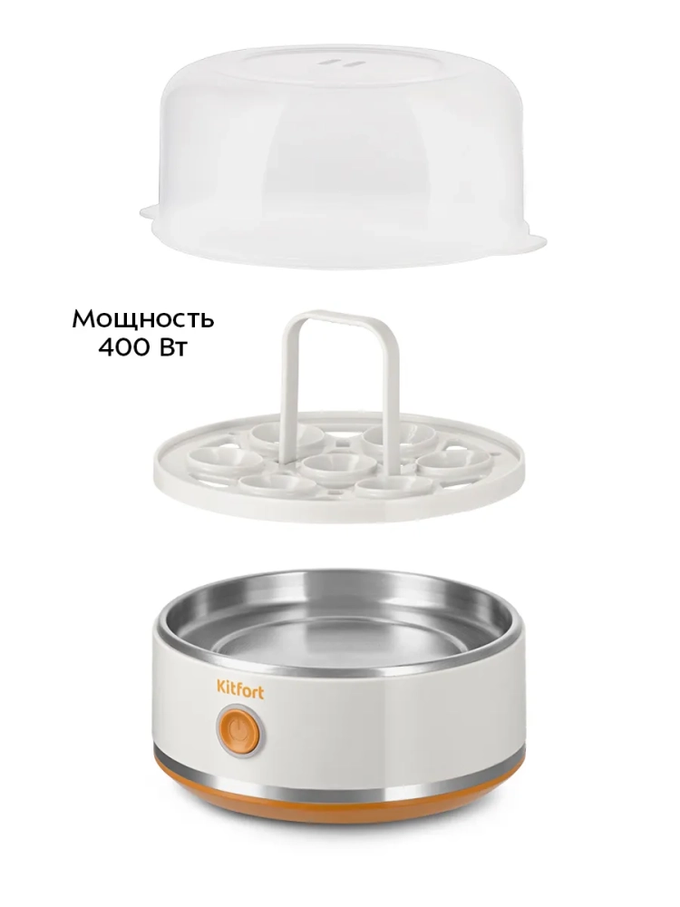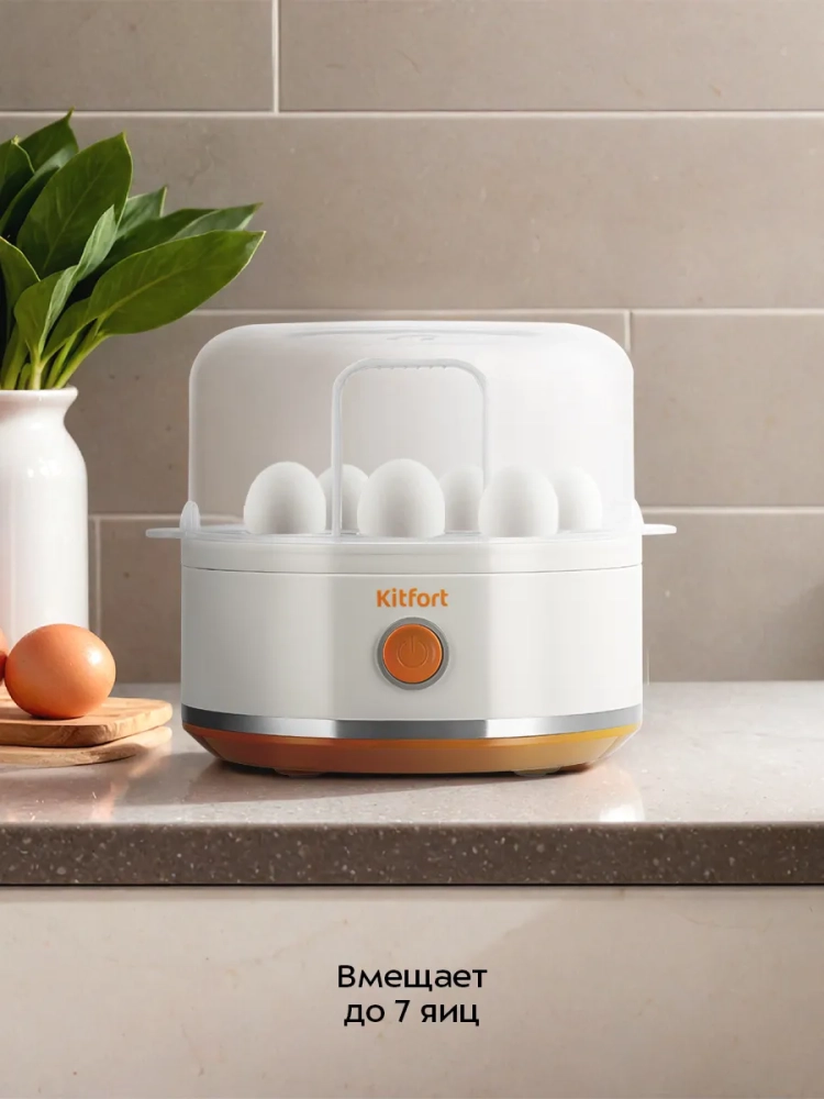 Яйцеварка Kitfort КТ-9803 предназначена для варки яиц на пару. Вареные яйца — неотъемлемый элемент вкусного, полезного, а самое главное простого завтрака. Иногда в утренней спешке не получается аккуратно положить яйца в кастрюлю с водой или вода слишком горячая, и яйца бьются друг о друга.