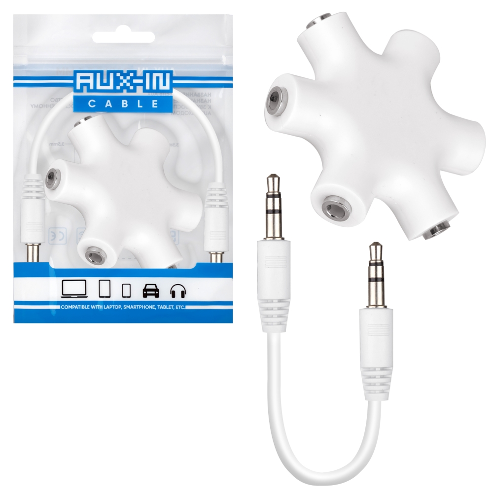 Кабель AUX 3,5 мм 6 в 1 белый (600шт/кор)