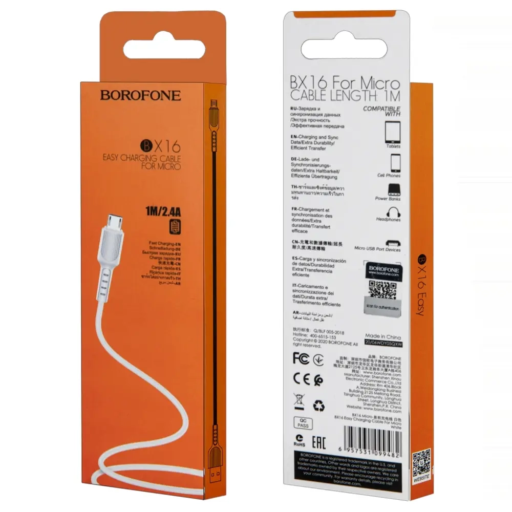 Кабель BX16 USB Micro USB 1M Borofone белый