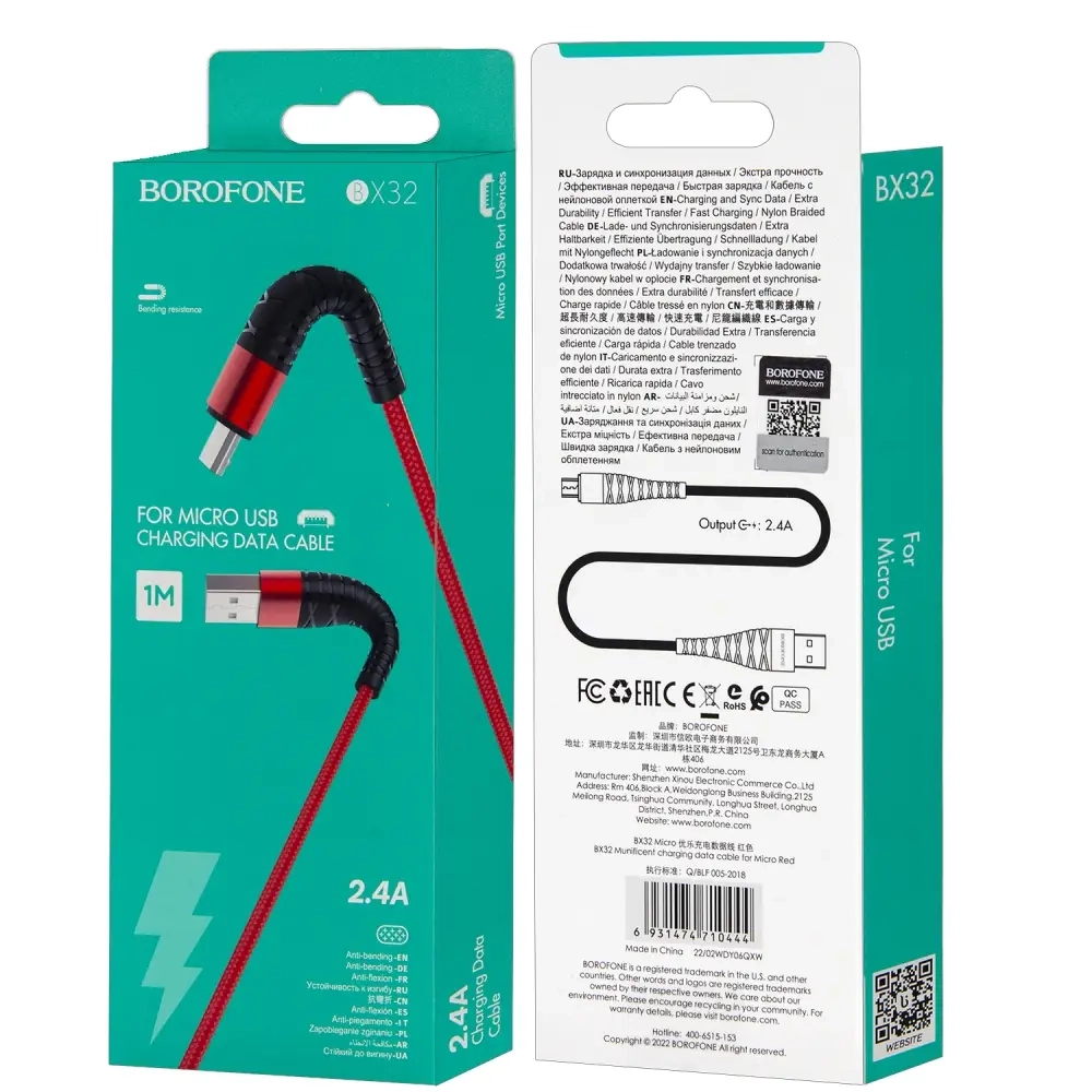 * Кабель BX32 USB Micro USB 1M Borofone красный